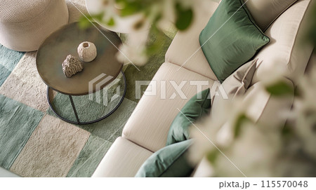 Stylish Living Room with Green Accents