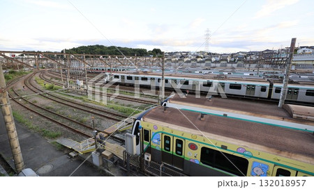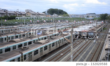 電車が数多く停車している東急電鉄の長津田検車区