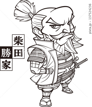 武装して槍を持って正面を向く柴田勝家【3頭身・家紋】