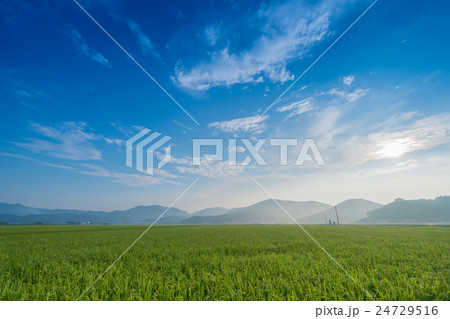 爽やかな水田の早朝の風景