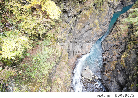 群馬県 秋の吾妻峡 八ッ場ダム下流の紅葉台橋からの吾妻峡の眺め 2022年11月4日