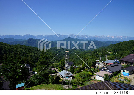 信州火の見やぐらと北アルプス