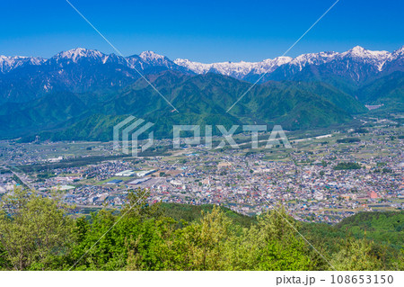 (長野県)鷹狩山展望台からの眺める、安曇野と北アルプス山麓