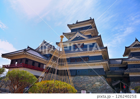 中部地方・松本城・本丸御殿跡、売店前から眺める松本城・長野県松本市(1)