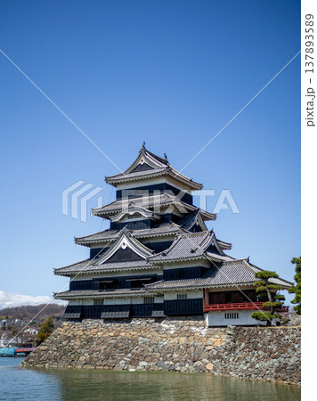 長野県上田市 上田城跡公園の満開桜と櫓とお堀