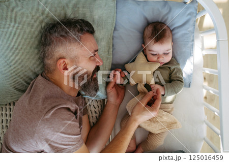 Tranquil and serene minimalist bedroom interior design. Modern home furniture arrangement with neutral color creates peaceful and calming atmosphere for rest and relaxation