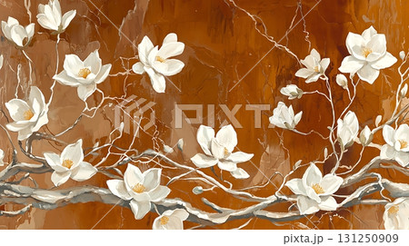 Elegant White Magnolia Blossoms on Branches Against a Warm Earthy Background