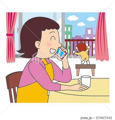 友達と、ソファーで長電話のお母さん