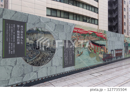 Takanawa Gateway City history panels in Takanawa, Tokyo, Japan. April 23, 2025