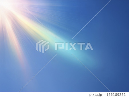 虹色の光とレンズフレアが輝く幻想的な背景。プリズムのような光彩が広がる抽象的なテクスチャ