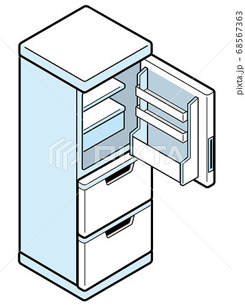 ドアが開いた家庭用冷蔵庫