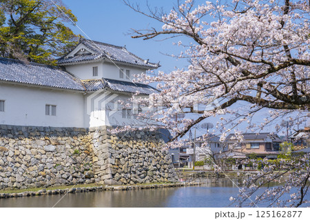 桜咲く滋賀県彦根城 二の丸佐和口多聞櫓と堀