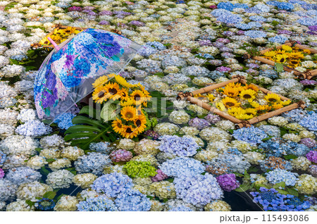 あじさいの池 あじさいアート 開成あじさい祭り
