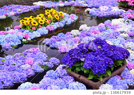 カラフルなあじさい池
