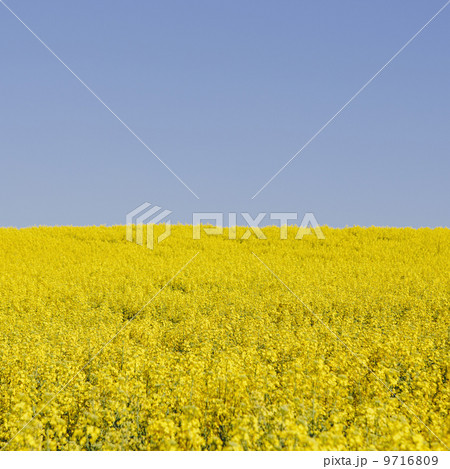 Field of blooming mustard seed plants flowering in Spring, near Pullman in Washington state.