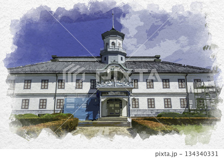 水彩画風 松本 旧開智学校 長野県松本市