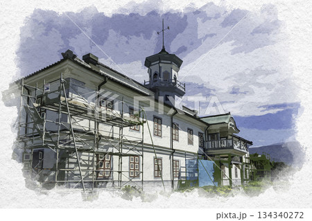 水彩画風 松本 松本市旧司祭館 長野県松本市