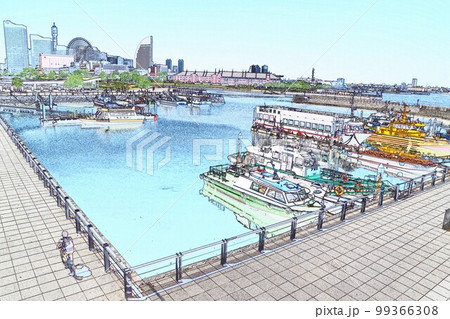 横浜港発祥の地開港波止場象の鼻パークカラー絵画風イラスト