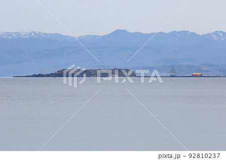 北海道 江差 上ノ国町から眺める江差町かもめ島