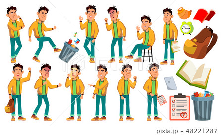 Asian Bad Boy Schoolboy Vector. High School Child. Children Study. Smile, Activity, Beautiful. For