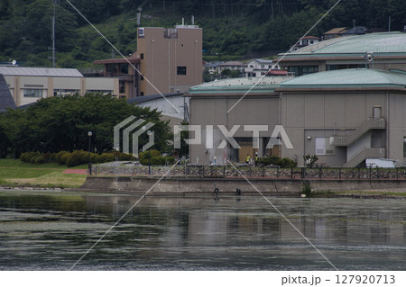 諏訪湖観光船から見る諏訪湖間欠泉センター 長野県諏訪市