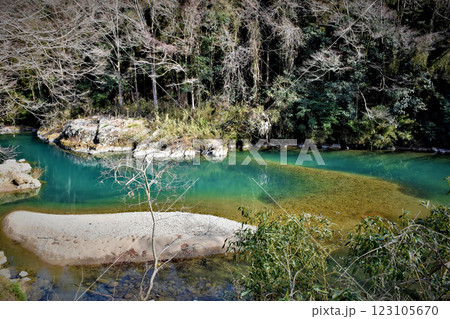 神秘的な色の清兵衛淵、岐阜県関市