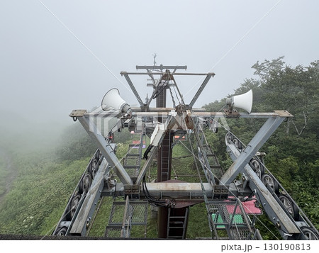 霧深い谷川岳天神平駅_夏の谷川岳ロープウェイリフト_霧の中