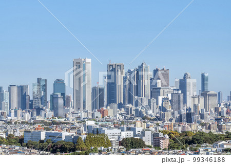 東京都 快晴の西新宿の高層ビル群と東京の街並み
