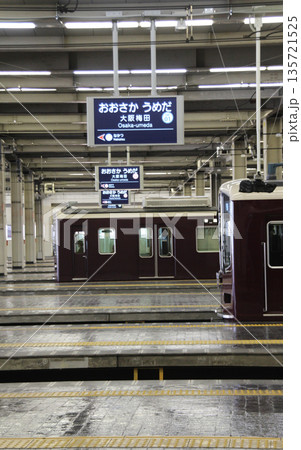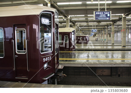 阪急大阪梅田駅のプラットホーム京都線京都河原町行き特急電車