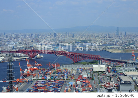 大阪 大阪港 観覧車から見た港大橋(東南方向)(夏)