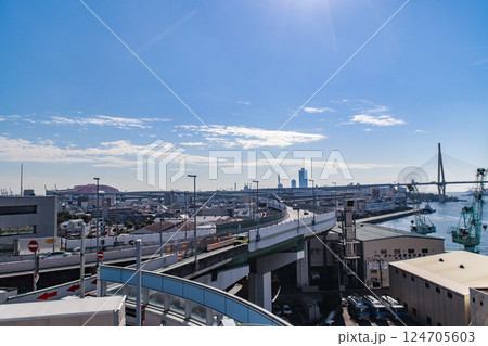 阪神高速道路・天保山料金所と港大橋の見える風景