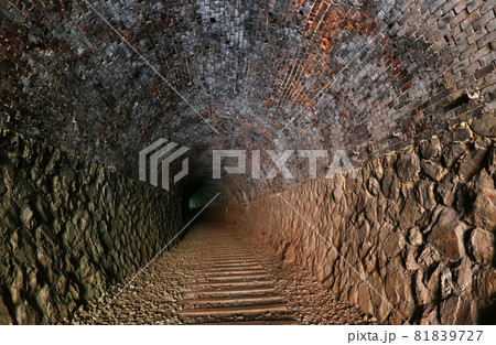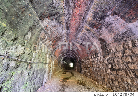 廃線跡の煉瓦トンネル内部 明治の遺構