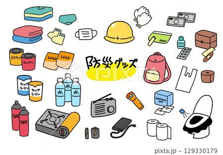 非常時に必要な防災セットのイラスト(備蓄・防災対策)