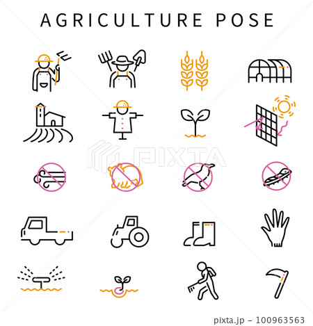 3色の線画アイコン 農業 その1 黒基調