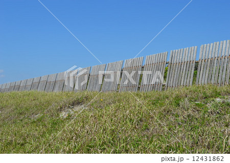 砂浜の竹製の防砂柵・環境問題の背景素材