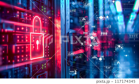 セキュリティとテクノロジー。個人情報を守る技術のイメージ