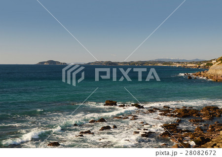 戸柱公園より望む光礁(阿久根の七不思議)と阿久根大島(鹿と海水浴場で)きれいな海 阿久根市 鹿児島県