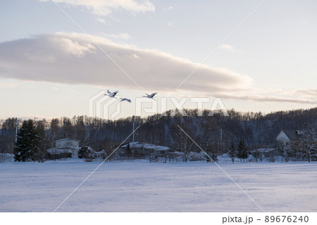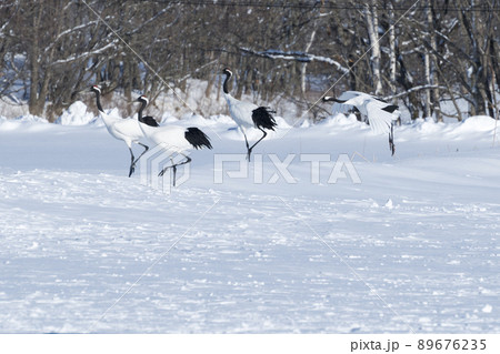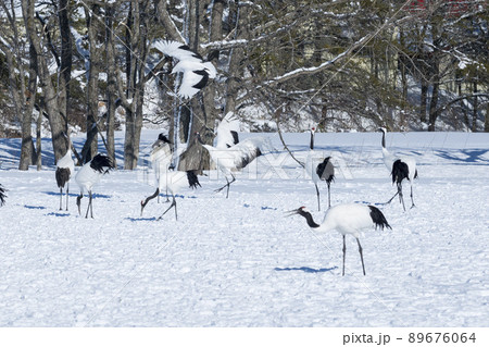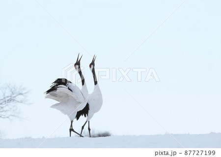 雪原の中の丹頂鶴 北海道阿寒郡鶴居村