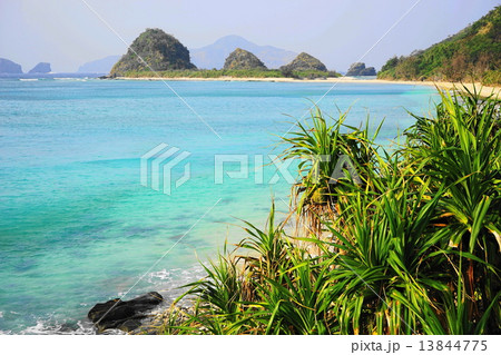 座間味島 阿真ビーチとシルグスク、沖縄県 慶良間諸島