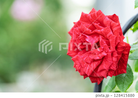 美しい自然光芒に映える赤いバラの花【ギーサヴォア薔薇】クローズアップ撮影(はな阿蘇美))