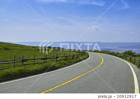 夏 阿蘇パノラマライン 坊中線 牧場沿いを走るドライブイメージ