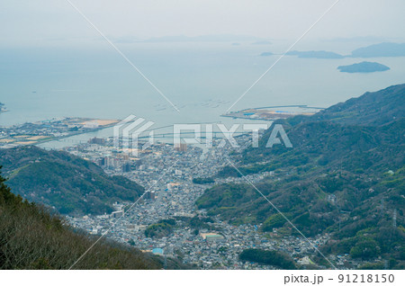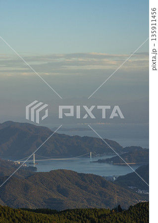 日本 広島県呉市栃原町にある灰ヶ峰の展望台から望む瀬戸内海と阿賀マリノ大橋