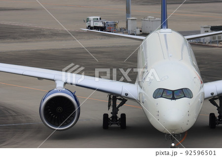 到着した旅客機 航空機の正面