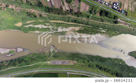 空撮 2017年9月9日撮影_九州北部豪雨後の濁った筑後川
