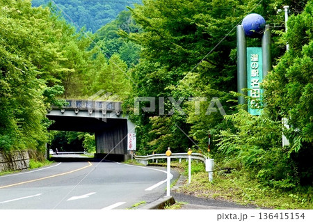 道の駅 名田庄(なたしょう)の看板が見える風景 福井県大飯郡おおい町名田庄