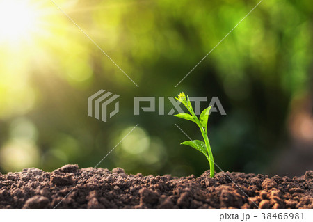 young plant growing with sun light.