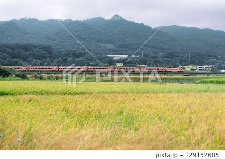 Taiwan Railways Express Train by Miaoli Houlong Longgang Rice Fields.