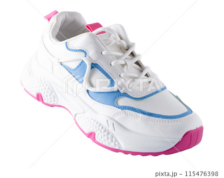 New white sneakers isolated. Fashionable sports shoes. Clean stylish shoe.