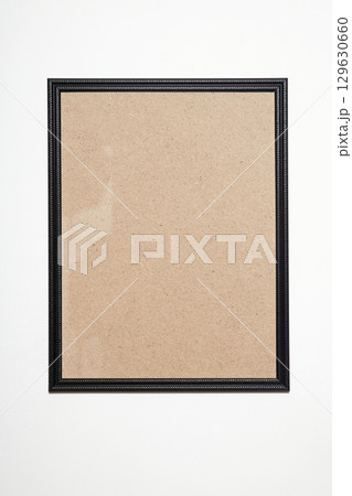 black picture frame on white wall. Stylish photoframe for poster or picture