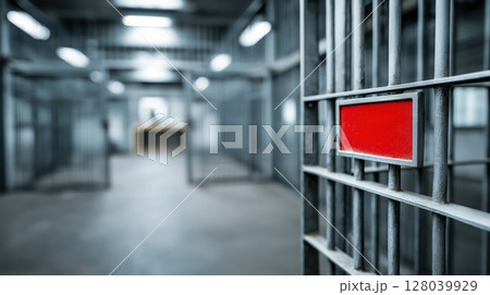 Empty Jail Corridor with Red Sign